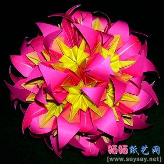 精致变幻的双形花球手工折纸图片教程
