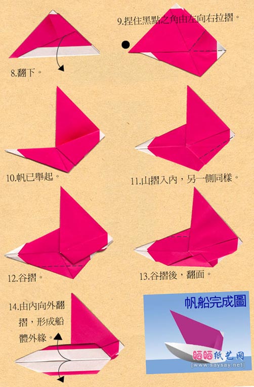 这次介绍的是一个步骤简单,造型轻巧的小帆船折纸,这只小帆船是多年前在一卷介绍自然景观的录像带里看到的,现在把它的教程制作出来与大家分享。与一般常见的折纸小船不同,喜欢的朋友不妨试折玩玩。