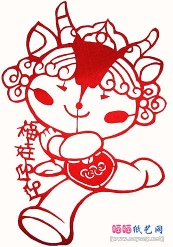很漂亮的福娃剪纸图案,北京欢迎您!