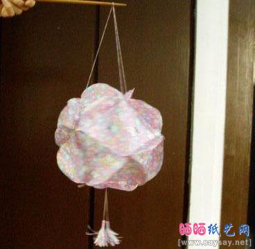 现在教大家做一个很简单的绣球纸花灯:先来看看制作好的成品图吧!