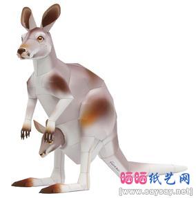 这是一个生活在澳大利亚的袋鼠纸模型。袋鼠喜欢在开阔的澳大利亚草原上面生活。袋鼠和其他袋类动物都有着一个和人类和其他动物不同的地方,那就是袋鼠是没有胎盘的,所以袋鼠不能够在子宫中孕育自己的孩子。但是这难不倒聪明的袋鼠,从这个3D纸模型中就可以看出来,袋鼠的身前有着一个袋子,他就在这里面怀上自己的小宝宝。这个育儿袋非常的神奇,里面还有着乳头,可以给小宝宝供给奶水。这个3D纸模型就是以基于真实的红袋鼠来制作的。红袋鼠也有着自己的特点,红袋鼠的雄性和雌性有着比较明显的区别,雄性红袋鼠是红褐色的,而雌性的红袋鼠则是蓝灰色的。