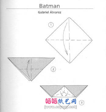 蝙蝠侠头部折纸的详细步骤如下所示: