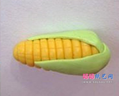 小朋友们应该都很喜欢吃玉米吧。特别是植物大战僵尸这款游戏推出之后,里面的玉米投手和玉米加农炮更是成为了小朋友们津津乐道的利器了。小编再和孩子制作手工粘土的时候,孩子总是会要求制作玉米加农炮或者玉米的要求呢。所以今天小编就跟大家分享一款非常简单的玉米的软陶粘土制作教程。不过只是单纯的玉米呢,需要制作加农炮的话再搜索下制作炮身体吧。制作上也是很简单的,玉米的难点主要就是玉米粒的制作了,这里巧妙的用黄色的软陶细条缠绕一个椎体得到了玉米的外形。注意要用刀片切出竖条切口模仿一粒粒的效果噢。外面的绿色衣服就简单了,两片三角形的薄片包裹就好了。不用太苛刻具体形状的,大致就好了。