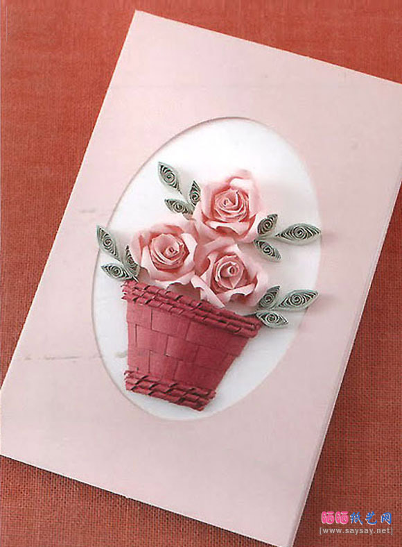 简单实用的衍纸玫瑰花贺卡DIY制作成品图
