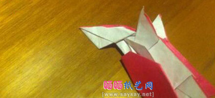 第37步:头颈中间红色多余的内折。