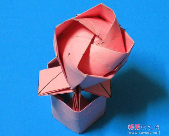 纸玫瑰折法完成效果,是不是很精致?下面就跟张姐姐一起浏览这篇带底座的精致玫瑰花折纸高清图片详解吧!