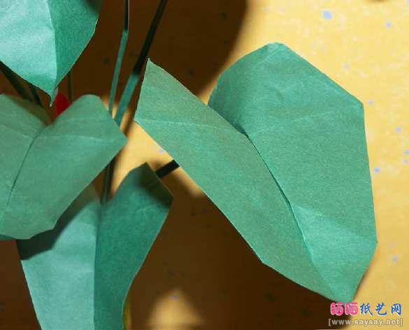 这是一个很逼真的形象的叶子折纸教程。
