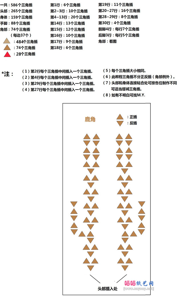 可爱的小鹿三角插折纸教程折纸步骤如下: