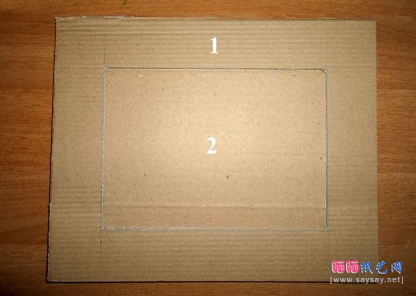 第一步:剪两块硬纸板,26*21CM,一块做底版,一块正中画出18*13CM的框,裁出外框
