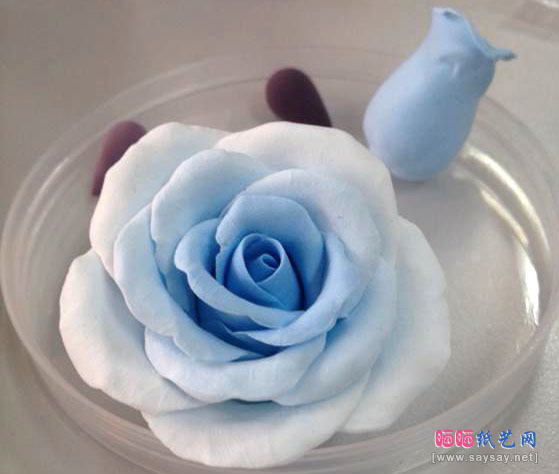 逼真的渐变玫瑰花软陶粘土手工制作完成效果图
