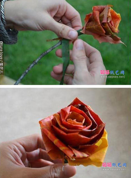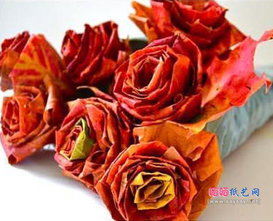 泡妞必备手工教程 如何用枫叶手工制作漂亮玫瑰花完成效果图