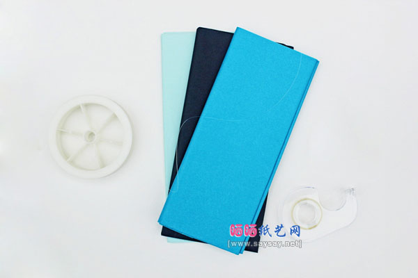 所需材料:纸(颜色可以自己挑选),双面胶带,剪刀,针,钓鱼线