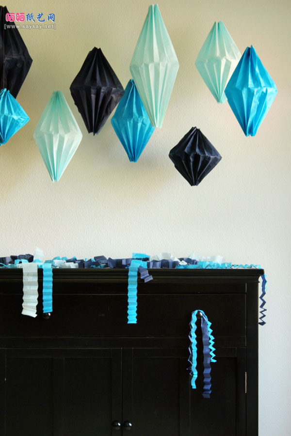 重复折几个大小与颜色不一的,悬挂起来,效果是不是很美呢?
