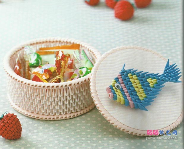 实用三角插彩虹鱼糖果盒手工折纸成品图