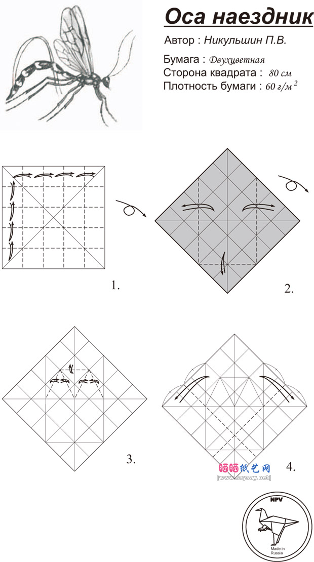 PavelNikulshin姬蜂手工折纸折纸祥细步骤如下所示: