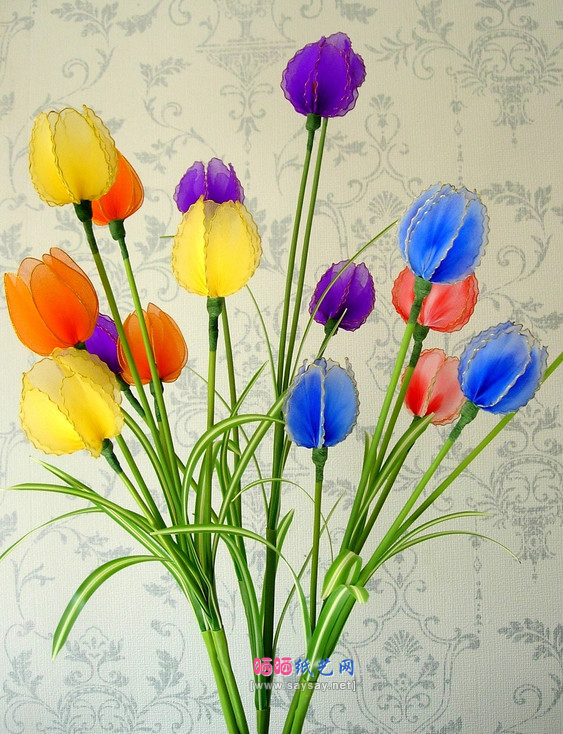 现在各城市都有公园在展开郁金香花展的活动吧,郁金香的美丽受到很多人的喜爱。今天小编教手工爱好者在家里做丝袜郁金香插花,让你在家都可以欣赏美丽的郁金香,而且是不会凋谢的。