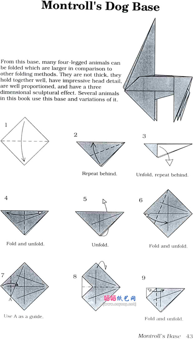 下面是晒宝纸艺网小编为大家提供的JohnMontrol拳师犬手工折纸教程详细步骤: