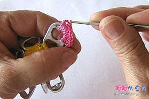 6、中间部分做好以后,就可以加工外部的边缘了,开始钩针。