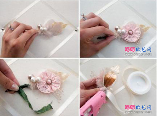 复古乳白色羽毛胸花手工制作教程完成效果图