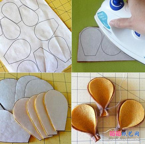 2、将纸张上的花瓣用熨斗粘贴在织物上