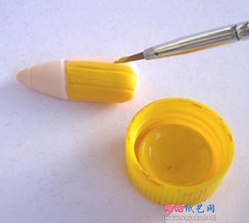 3、晾上几个小时就可以给铅笔上色了,首先的是铅笔的主体色,