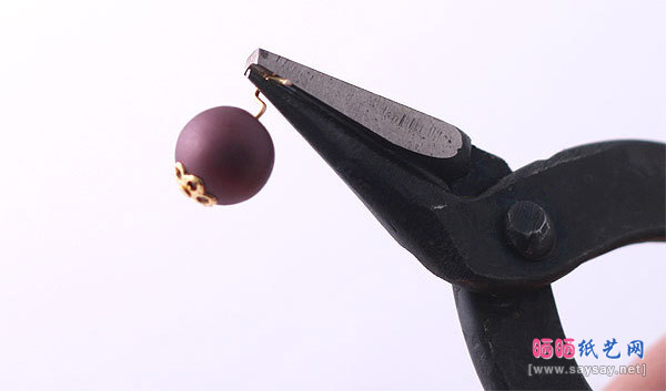 2、拿出一颗珠子把大头针插在里面上面用花瓣金属装饰