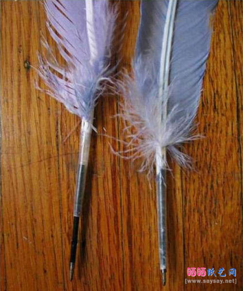 4、看看已经放置好笔芯的羽毛笔,羽毛笔的制作教程详解完成,是不是很简单,喜欢就动手做吧。