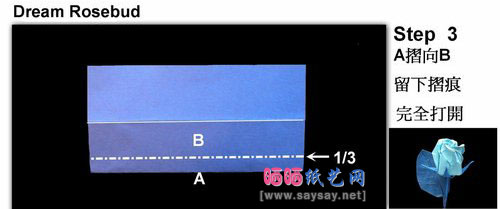 3.A折向B,留下折痕,完全打开。
