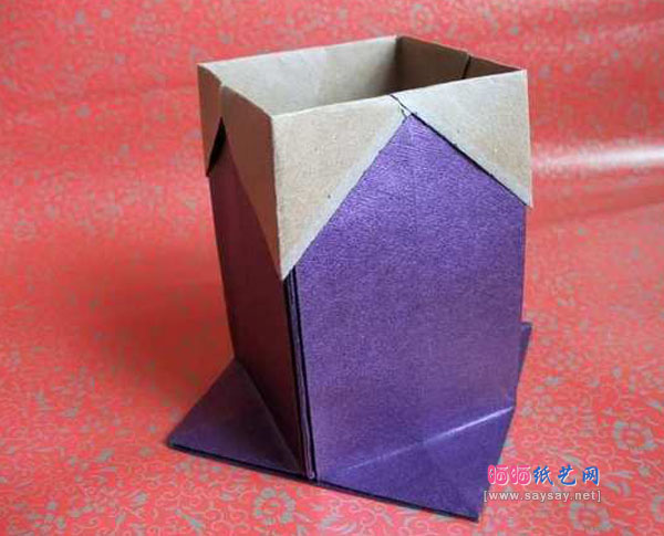 这是一个很实用的折纸教程,不管是做花瓶、笔筒或是收纳小桶都是非常棒。
