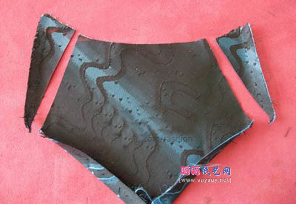 4、然后将三片缝在一起。再按三角口水巾纸样裁剪。
