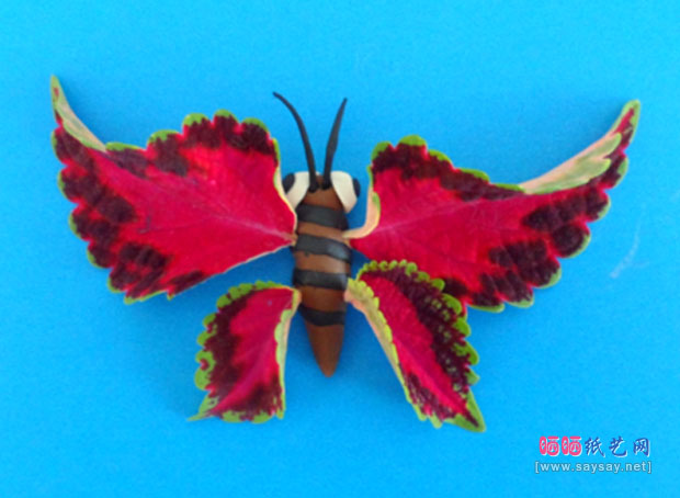 换上不同的叶子还可以制作出不同效果的蝴蝶噢。