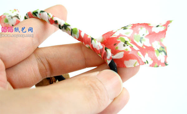 钮扣和碎花布手工制作亮田原风格布艺发圈(二)