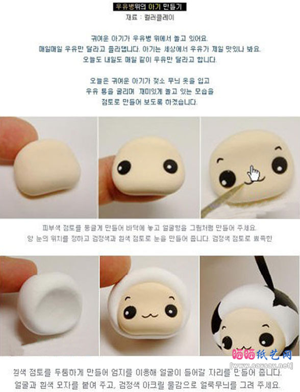 韩国粘土教程动物系列奶牛娃娃软陶手工制作方法的详细步骤如下:用无毒面粉制作橡皮泥的方法(点此查看)