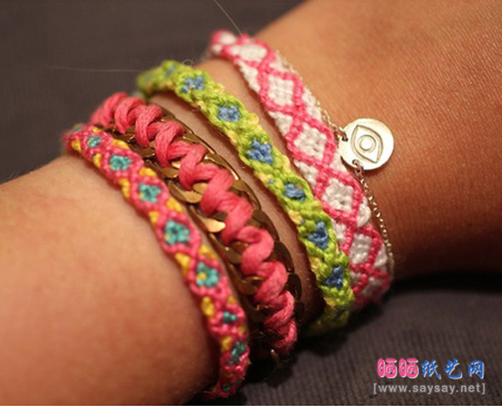 这是一个非常漂亮的配色花型手绳编织,带上它绝对可以让你亮丽一整个夏天。