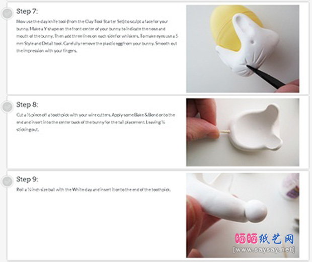 下面是晒宝纸艺网小编为大家提供的兔子蛋杯软陶手工制作图文教程详细步骤如下: