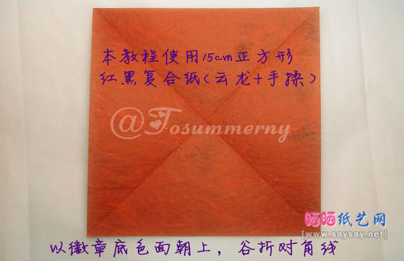1以徽章底色面朝上,谷折对角线