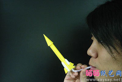 11.将一根吸管从圆筒尾部插入圆筒中,用嘴用力一吹,小飞箭就会腾空而起。