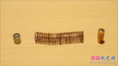 制作步骤:将铜线一圈挨一圈紧密地绕在电池上,绕完后取下就是一线圈,这就是“列车轨道”,长短随你喜欢;接着将每三块磁铁一组吸在一起,需要两组,一组接电池正极另一组接负极;最后把电池放进线圈,带有磁铁的电池就会从铜线圈内部横穿而过,这就是一个简易版“磁悬浮列车”。