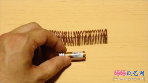 如果不够刺激,你可以将线圈绕得更长,再两端相接形成一个闭环,电池就能在封闭的线圈内不停地跑动,直到电池耗完。
