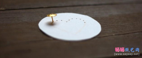 3、Now use your thumbtack and make holes in the cardboard. Here I followed my initial heart design but you could also make random holes if you don’t feel like following a tedious design or pattern.用图钉,在纸板上或无酸水彩纸上,延心形打孔。如果你不喜欢心形,也可以做一个自己喜欢的。