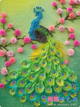 9.孔雀的上半身和最下面一层的尾巴粘上去。