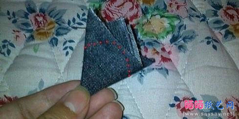 制作方法:1、我们先把牛仔剪成7、8公分见方的方片,一共需要13张,可以做两层。牛仔面料比较厚,两层就已经很丰满了。如果大家用薄料子做,可以考虑多加一层,就要多准备6张了。剪好以后就像这样。