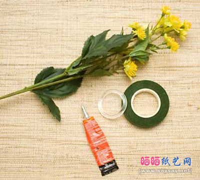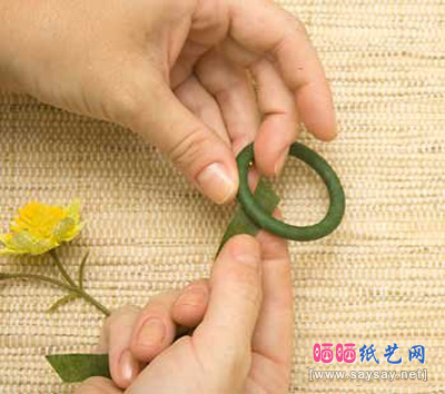7、花要有叶搭配才更漂亮,注意胶带要拉紧