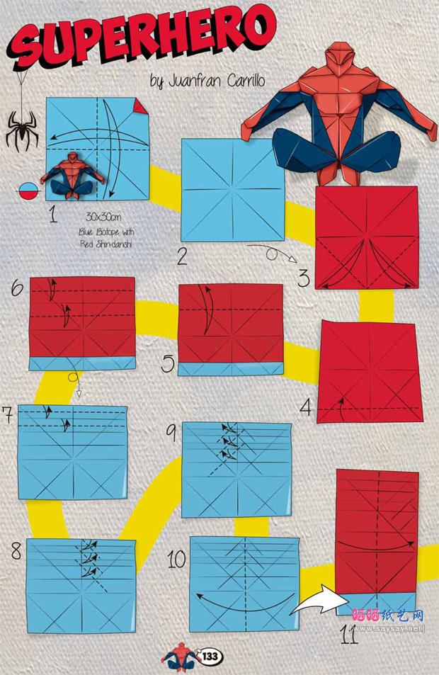儿时英雄蜘蛛侠折纸图谱教程方法步骤: