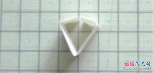 8.这个时候对纸条进行调整,将上部的折叠部分向内压折。形成衍纸小鸡的嘴部。