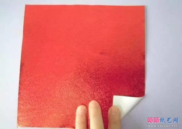 1:准备材料,制作圣诞靴所需的材料有正方形纸(一面红色一面白色)。