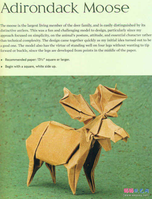 阿迪朗达克驼鹿折纸图谱教程方法步骤: