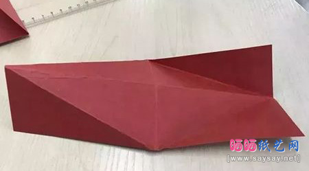 4、按照步骤2和步骤3折叠6个小长方形卡纸。取两个折好的卡纸,将向上的两角用订书机沿折痕处钉起,按同样的方法依次钉起这6个小长方形卡纸。