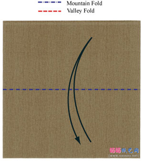 1.准备:首先同样依旧是准备方形的纸张,将纸张进行上下两个边的对折。并且还原之后留下折痕。